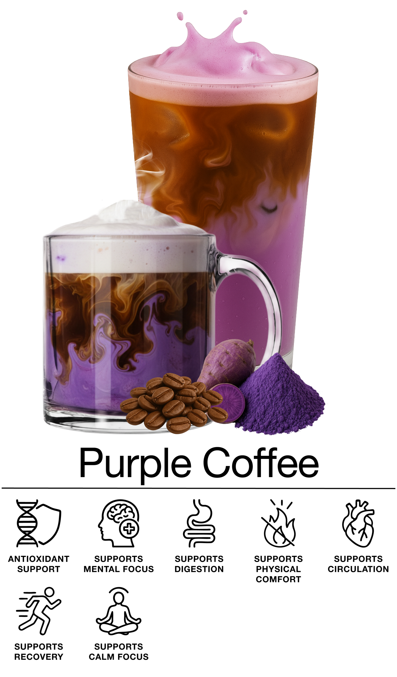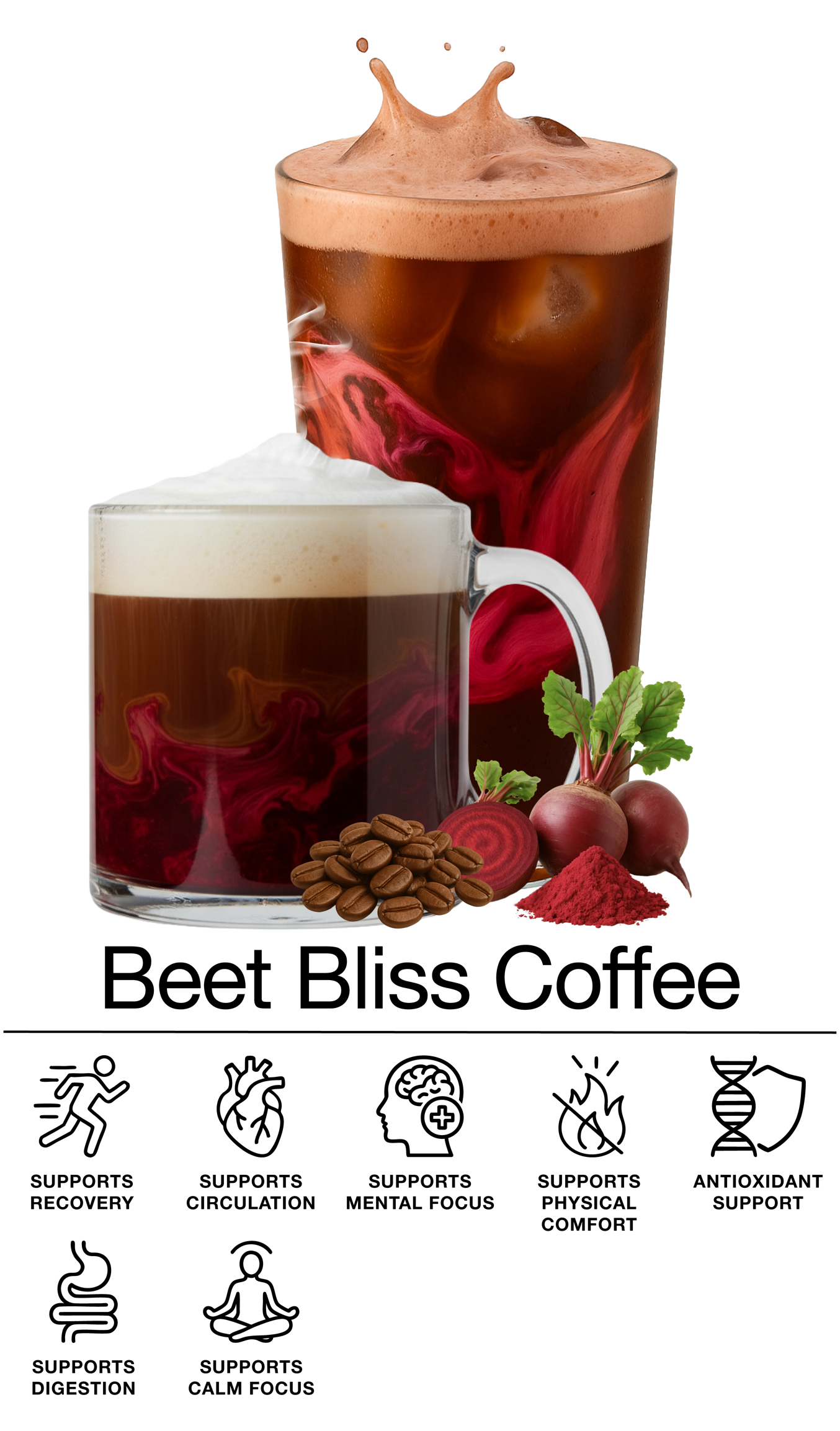 Each drink begins with 100% Arabica coffee and is enhanced with nutrient-rich botanicals that naturally support focus, energy, and overall balance.