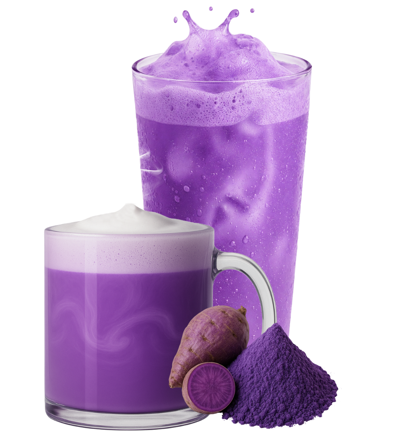 A creamy, violet-hued latte crafted with 100% pure purple sweet potato powder and organic oat milk powder.